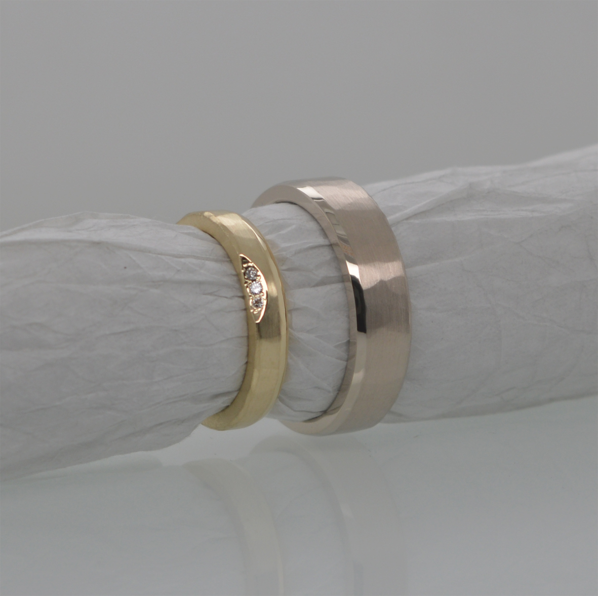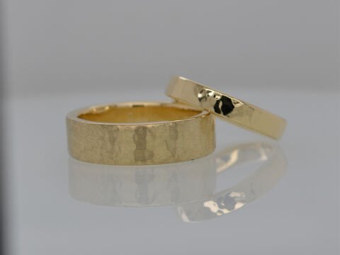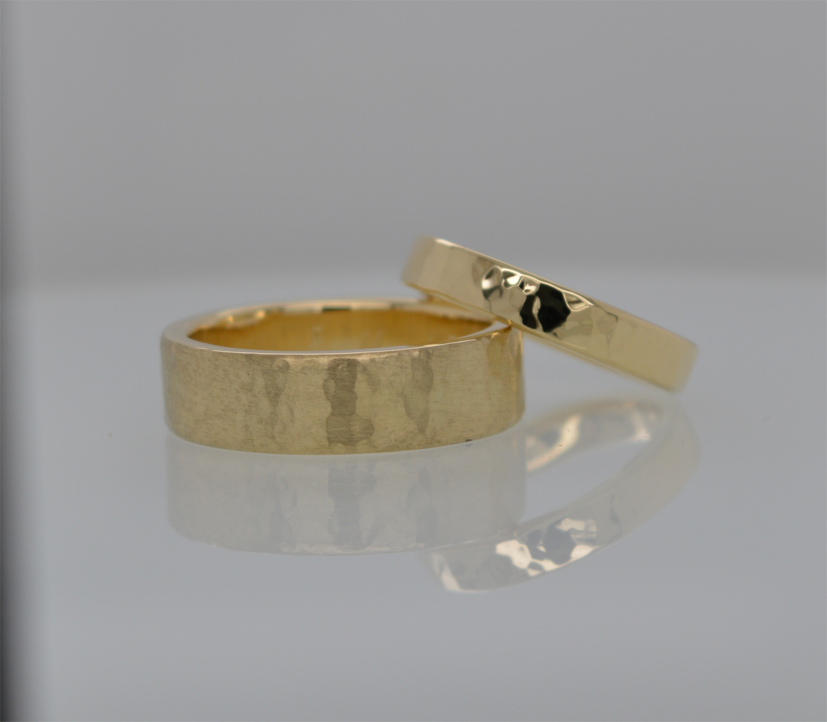 Eheringe Workshop: Für einen besonderen Start in das gemeinsame Eheleben können meine Kunden selbst bei der Fertigung der Ringe mitarbeiten. Das Selberschmieden von Trauringen ist eine wunderbare Möglichkeit, Ihre Liebe und Verbundenheit auf eine einzigartige Weise zu symbolisieren. Es ermöglicht Ihnen, Ihre Ringe mit persönlicher Bedeutung und individuellem Stil zu gestalten. Indem Sie Ihre eigenen Trauringe schmieden, können Sie nicht nur Ihre Kreativität ausleben, sondern auch eine besondere Bindung zu Ihren Ringen aufbauen. Jeder Schlag des Hammers und jeder Handgriff wird zu einem Teil Ihrer gemeinsamen Geschichte. Sie haben die Möglichkeit, aus verschiedenen Materialien wie Gelb-, Rosé-, Rot- oder Weiß-Gold zu wählen und Ihre Ringe nach Ihren Vorstellungen zu formen. Ob klassisch, modern oder extravagant - Ihrer Fantasie sind keine Grenzen gesetzt. Das Selberschmieden der Trauringe bietet Ihnen zudem die Gelegenheit, einen unvergesslichen Moment gemeinsam zu erleben. Sie können sich gegenseitig unterstützen, während Sie Ihre Ringe formen und sie mit Liebe und Hingabe gestalten, weil echte Liebe echte Handarbeit verdient.